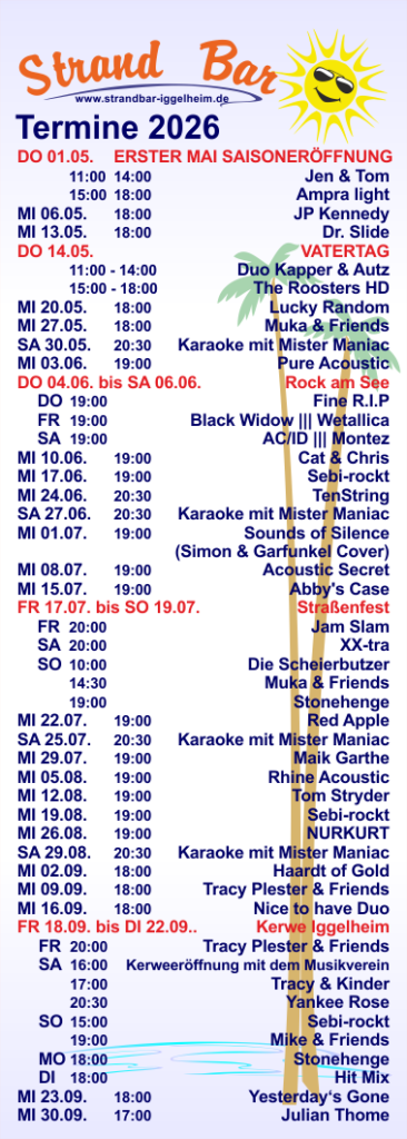 Unsere Sommerevents fangen bis zum 09.06. und ab 01.09. ab 18:00 an.